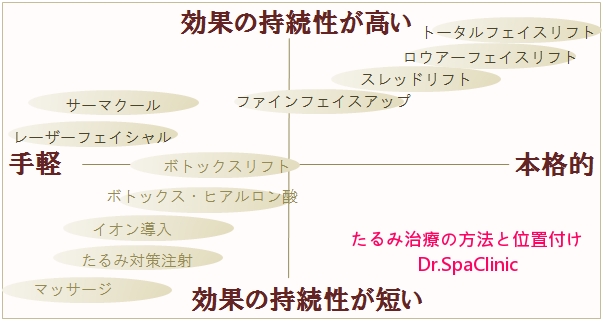 下記の図はドクタースパが考えるたるみ治療の位置づけです。こちらも参考にされてみて下さい。